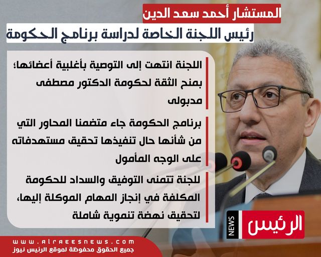المستشار أحمد سعد الدين: التوصية بمنح الثقة لحكومة مدبولي