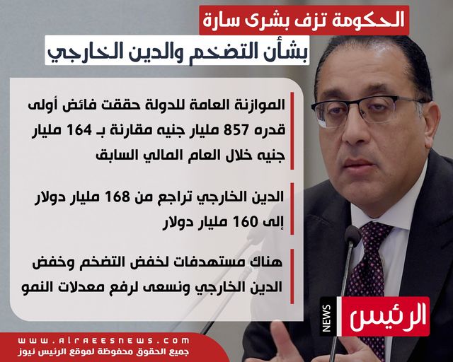 واختتم: "السيد رئيس الوزراء أشار أيضا لجهود الدولة في خفض الدين الخارجي الذي تراجع من 168 مليار دولار إلى 160 مليار دولار وبالتالي هناك مستهدفات لخفض التضخم وخفض الدين الخارجي كما نسعى لرفع معدلات النمو".