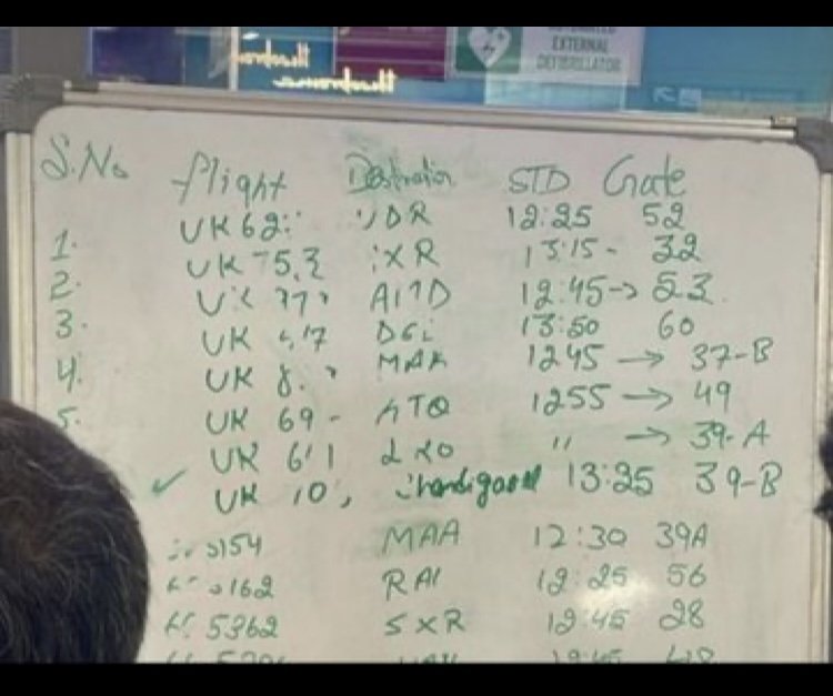 وأظهرت الصور المتداولة على منصات التواصل الاجتماعي في مطار الهند كتابة أرقام الرحلات على سبورة وتذكرة الصعود بطريقة يدوية.