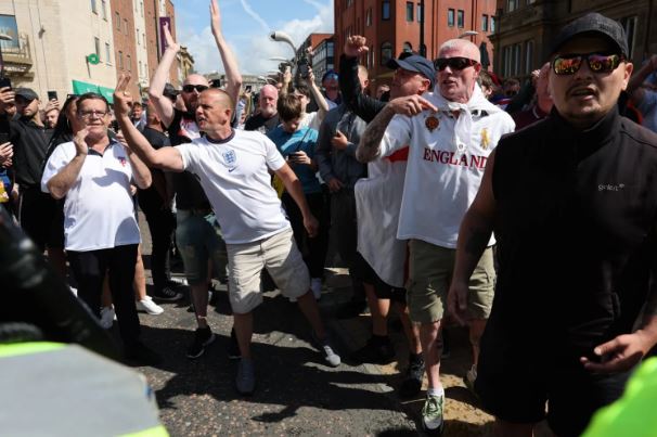 بدأت سلسلة الحوادث العنيفة في ساوثبورت منذ يوم الثلاثاء الماضي، حيث هاجم المتظاهرون الشرطة وأضرموا النار في السيارات في اليوم التالي لمقتل ثلاث فتيات في هجوم بسكين في ملهى عطلات وتم اتهام أكسل موغانوا روداكوبانا، 17 عامًا، من لانكشاير، بالهجوم، لكن انتشرت ادعاءات كاذبة عبر الإنترنت بأن المشتبه به كان طالب لجوء وصل إلى المملكة المتحدة بالقارب.