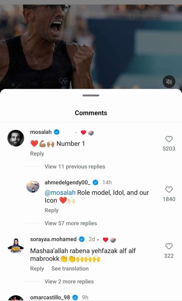 وعلق محمد صلاح على صورة نشرها الجندي عبر حسابه بمنصة انستجرام، مساء أمس الإثنين بقوله: "رقم 1"، ليرد لاعب الخماسي بقوله: "قدوة ومثال يُحتذى به".