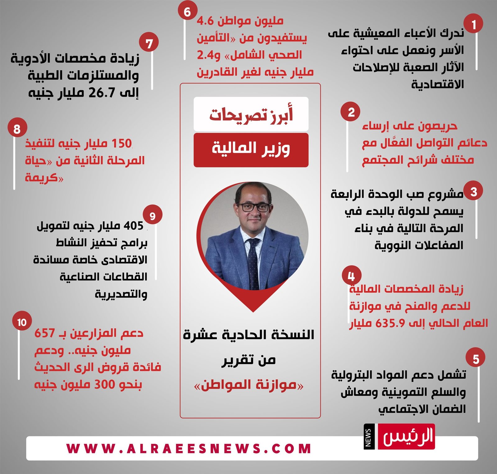 ونستعرض في الإنفوجراف التالي أبرز تصريحات وزير المالية:
