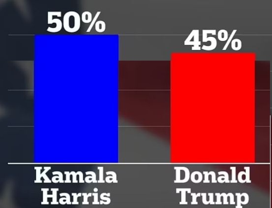ذكرت صحيفة دايلي ميل أن استطلاعات الرأي الأخيرة تكشف عن تقدم لافت لنائبة الرئيس كامالا هاريس بخمس نقاط على دونالد ترامب بين الناخبين المسجلين بعد المناظرة الرئاسية وذلك بعد أن التقى المرشحان لأول مرة، الثلاثاء الماضي، على شاشة قناة "إيه بي سي" الإخبارية في مناظرة في فيلادلفيا وقضيا أكثر من ساعة ونصف في التصارع حول ملفات الإجهاض والاقتصاد والسياسة الخارجية.