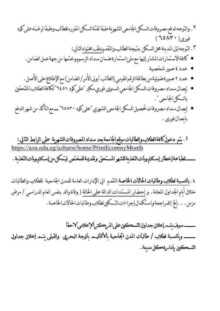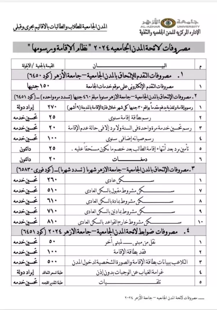 يمكن الاطلاع على مصاريف المدينة الجامعية بجامعة الأزهر 2024 2025، من خلال الصور التالية: