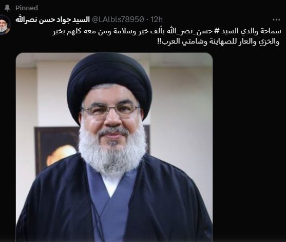 رغم أن الجيش الإسرائيلى أعلن رسميا اغتيال حسن نصرالله، إلا أن نجله جواد حسن نصر الله، أكد سلامة حسن نصرالله، في تغريدة على منصة "إكس"، حيث قال: "سماحة والدي السيد حسن نصر الله بألف خير وسلامة ومن معه كلهم بخير".