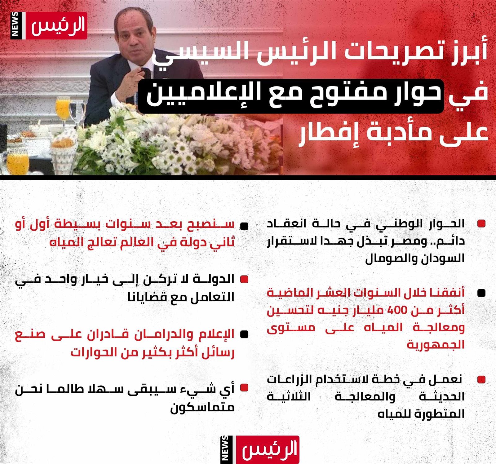 أبرز تصريحات السيسي في حوار مفتوح مع الإعلاميين على مأدبة إفطار