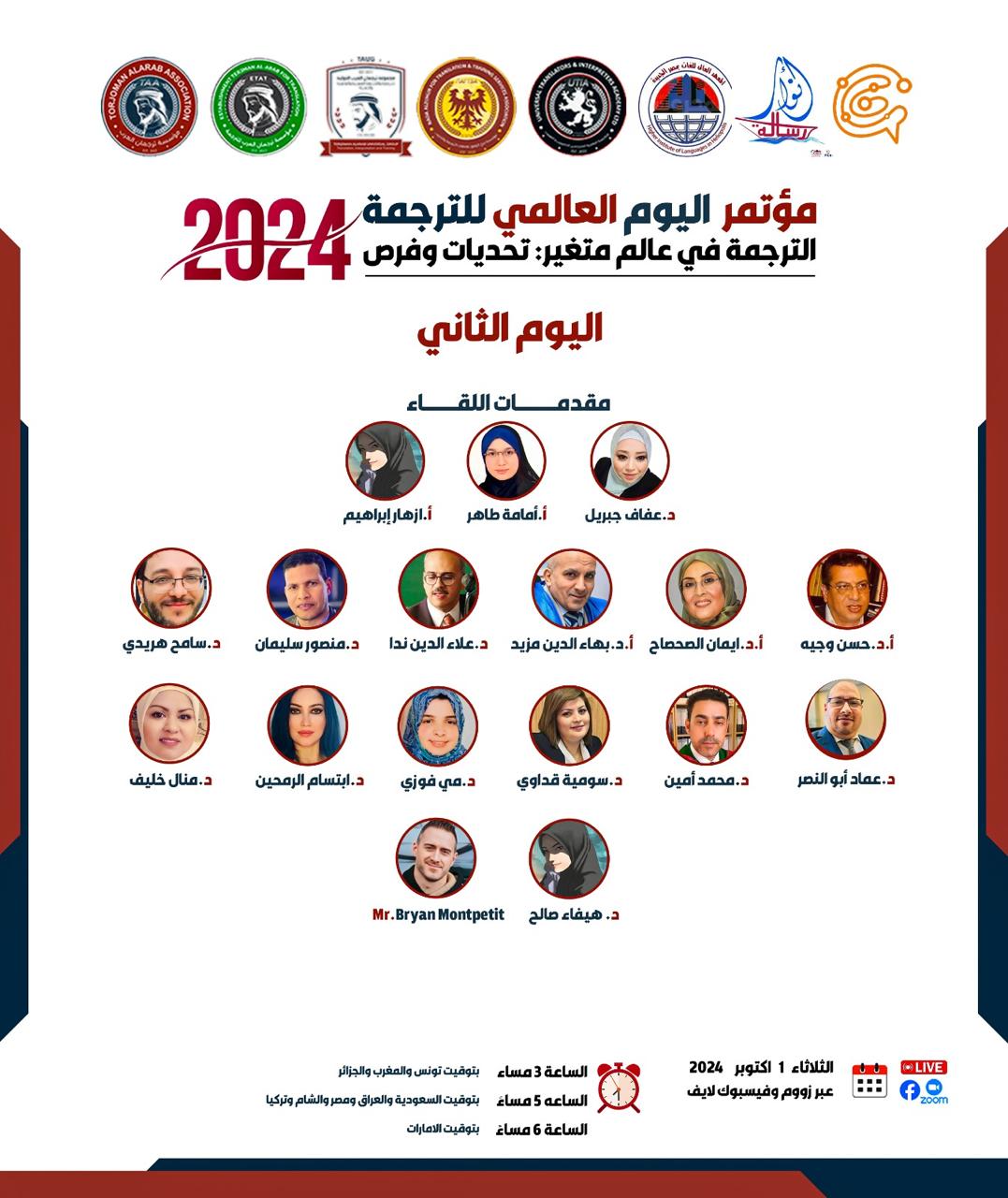 شهد المؤتمر مشاركة بارزة لنخبة من المتخصصين من مصر، سوريا، المغرب، العراق، الأردن، لبنان، الجزائر، السعودية، كندا، بما في ذلك أسماء بارزة مثل الدكتور عبد الله رشدي من علماء الأزهر الشريف وأساطير الترجمة في مصر مثل الاستاذ الدكتور الدكتور مصطفى رياض والأستاذ الدكتور بهاء الدين مزيد والأستاذ الدكتور ايمان صحصاح والأستاذ الدكتور حسن وجيه والأستاذ الدكتور أيمن الحلفاوي والدكتور علاء الدين ندا والسينارست الشهير والمحاضر الرائع الدكتور حسين مصطفى محرم والدكتور هاني الامام والدكتورة مي فوزي ورئيس مجموعة ترجمان العرب الدولية الدكتور محمد الويشي ومن سوريا الأستاذ الدكتور حسن غزالة وكذلك مشاركة رائعة من المملكة العربية السعودية من الدكتورة مريم الجوفي وأصغر مدرب في السعودية المدرب أوس الفوزان.