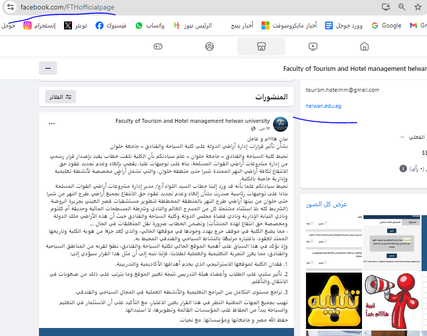 وتابعت الكلية في بيان لها عبر صفحتها الرسمية على “فيسبوك”، المربوطة بموقع جامعة حلوان: بأنه قد ورد إلينا خطاب اللواء أ.ح مدير إدارة مشروعات أراضي القوات المسلحة بناء على توجيهات رئاسية صدرت بشأن إلغاء وعدم تجديد عقود حق الانتفاع بجميع أراضي طرح النهر من شبرا حتى حلوان من بينها أراضي طرح النهر بالمنطقة المخططة لتطوير مستشفيات قصر العيني بجزيرة الروضة الشريط كله بلا استثناء مشتملا كل من المسرح العائم والنادي وشرطة المسطحات المائية وحديقة أم كلثوم ونادي النيابة الإدارية ونادي قضاة مجلس الدولة وكلية السياحة والفنادق حيث أن هذه الأراضي ملك الدولة ومخصصة حق انتفاع لهذه المنشآت وتضمن الخطاب ضرورة نقل المتعلقات في الحال.