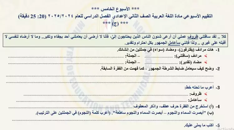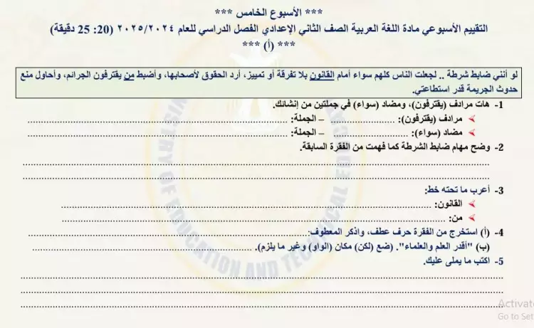 وفي هذا السياق، نعرض لكم تقييم وواجب وأداء الأسبوع الخامس عربي للصف الثاني الإعدادي 2024، وذلك من خلال الصور التالية: