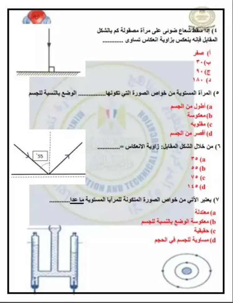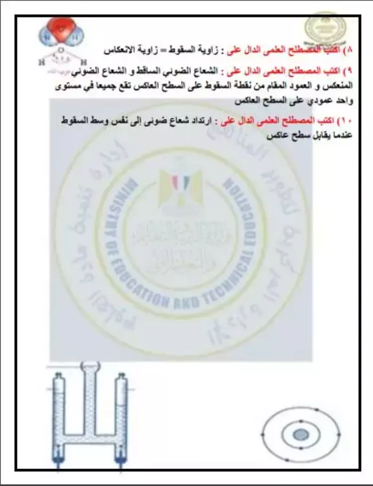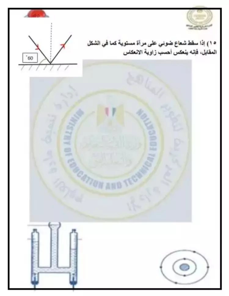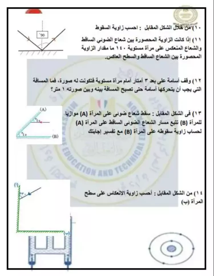 ما معنى أن: زاوية سقوط شعاع ضوئى على سطح عاكس تساوى صفر