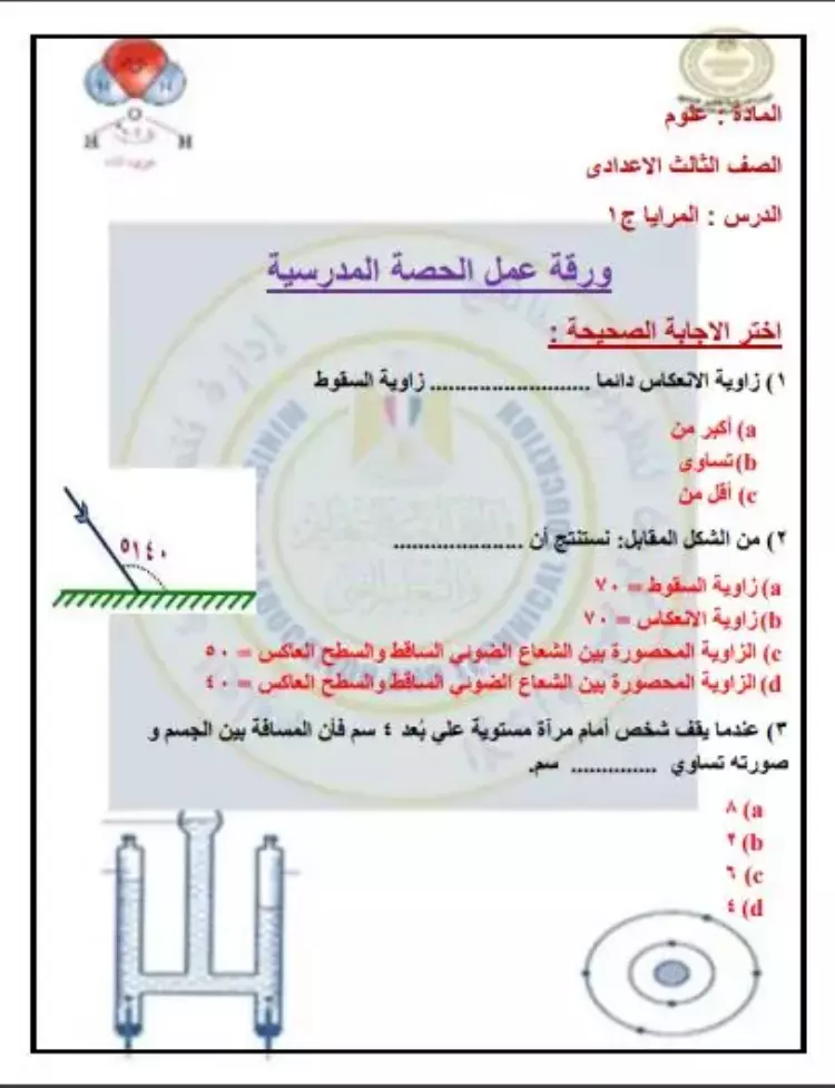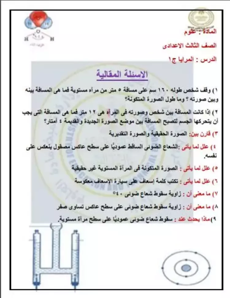 خلال السطور التالية نستعرض أسئلة تقييم الأسبوع الخامس لمادة العلوم لطلاب الصف الثالث الإعدادي وذلك على النحو التالي: