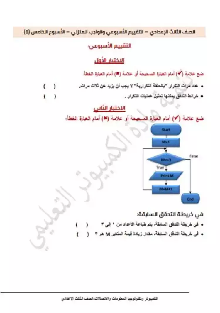 تقييم الأسبوع الخامس تكنولوجيا المعلومات الصف الثالث الإعدادي 2024