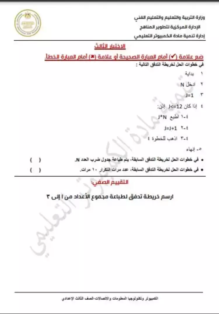 خلال السطور التالية، نستعرض سؤال الأداء الصفي في مادة الكمبيوتر وتكنولوجيا المعلومات لطلاب الصف الثالث الإعدادي على النحو التالي:
