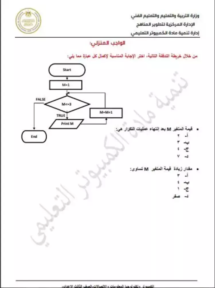 خلال السطور التالية نستعرض أسئلة الواجب المنزلي لطلاب الصف الثالث الإعدادي في مادة الكمبيوتر وتكنولوجيا المعلومات والاتصالات، وذلك على النحو التالي: