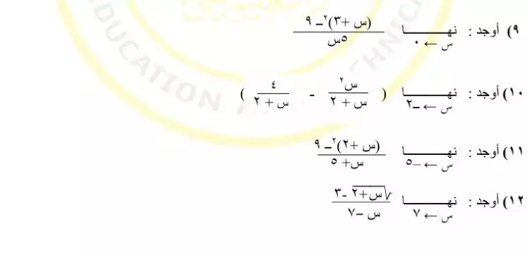 تقييمات الرياضيات العامة أدبي للصف الثاني الثانوي الأسبوع السادس 2024
