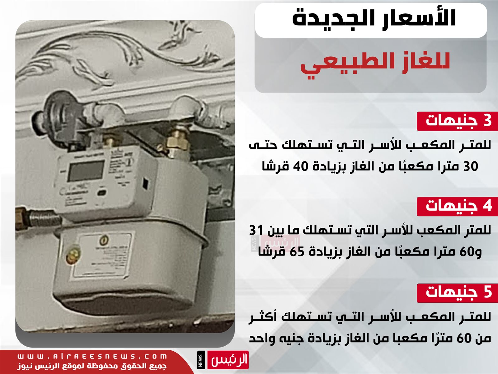 ومن جانبها، رفعت الحكومة أسعار الغاز الطبيعي المورد للمنازل بما يتراوح بين 40 و100 قرش للمتر المكعب، في إطار خطة الدولة الأوسع نطاقًا لرفع الدعم عن الوقود تدريجي، وفقًا للشرائح التالية:
