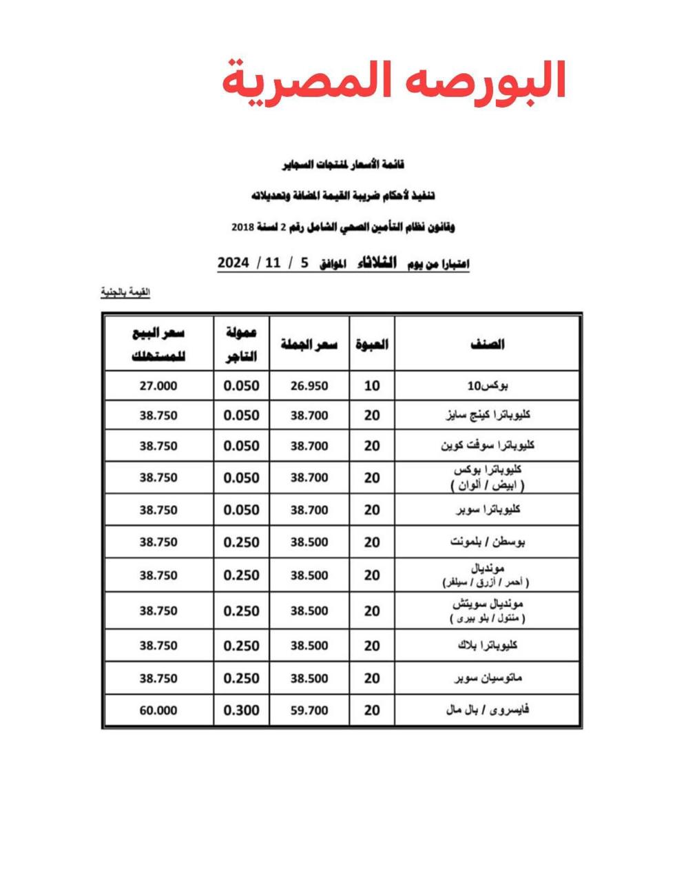 كليوباترا (بوكس، سوفت، كوين وكينج زايز، وبلاك وسوبر): 38.75 جنيه.