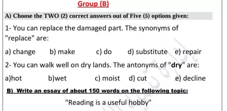 مرفق بالأسفل الملفات المنشورة من قبل الوزارة، ومثال الأسئلة الواردة فيها ما يلي: