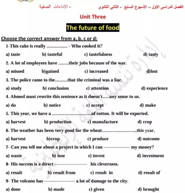 Choose the correct answer from a، b، c or d: