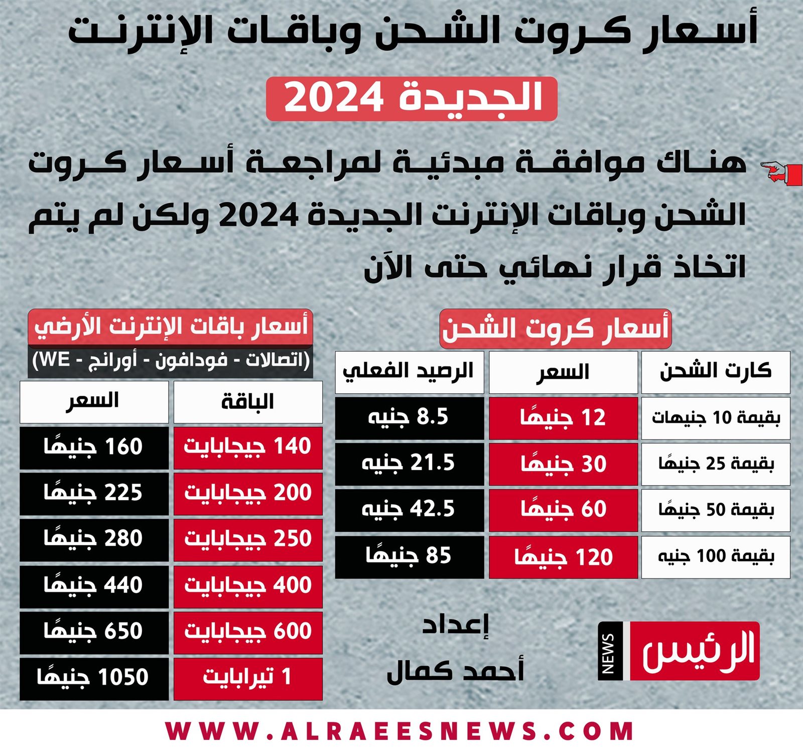 “الرئيس نيوز” يستعرض في الإنفوجراف التالي أسعار كروت الشحن وباقات الإنترنت: