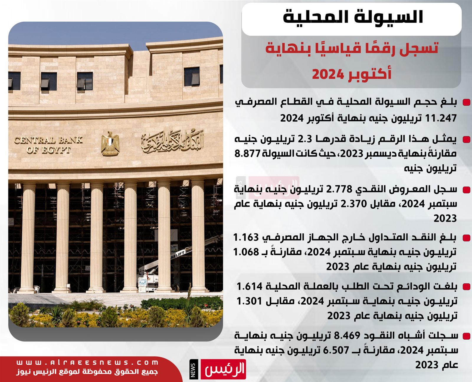 السيولة المحلية تسجل 11.247 تريليون جنيه بنهاية أكتوبر 2024