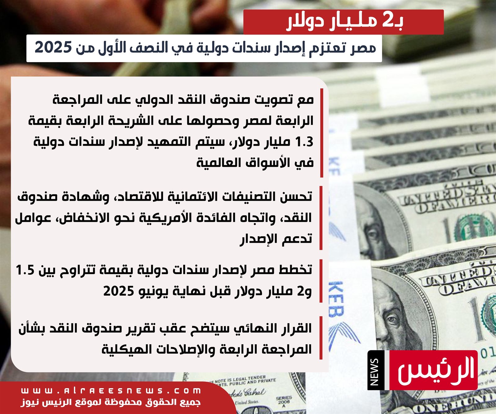 وأكدت المصادر أنه يوجد خطة لإصدار سندات دولية عبر شرائح تتراوح بين 1.5 مليار دولار و2 مليار دولار قبل انقضاء العام المالي الحالي آخر يونيو 2025.