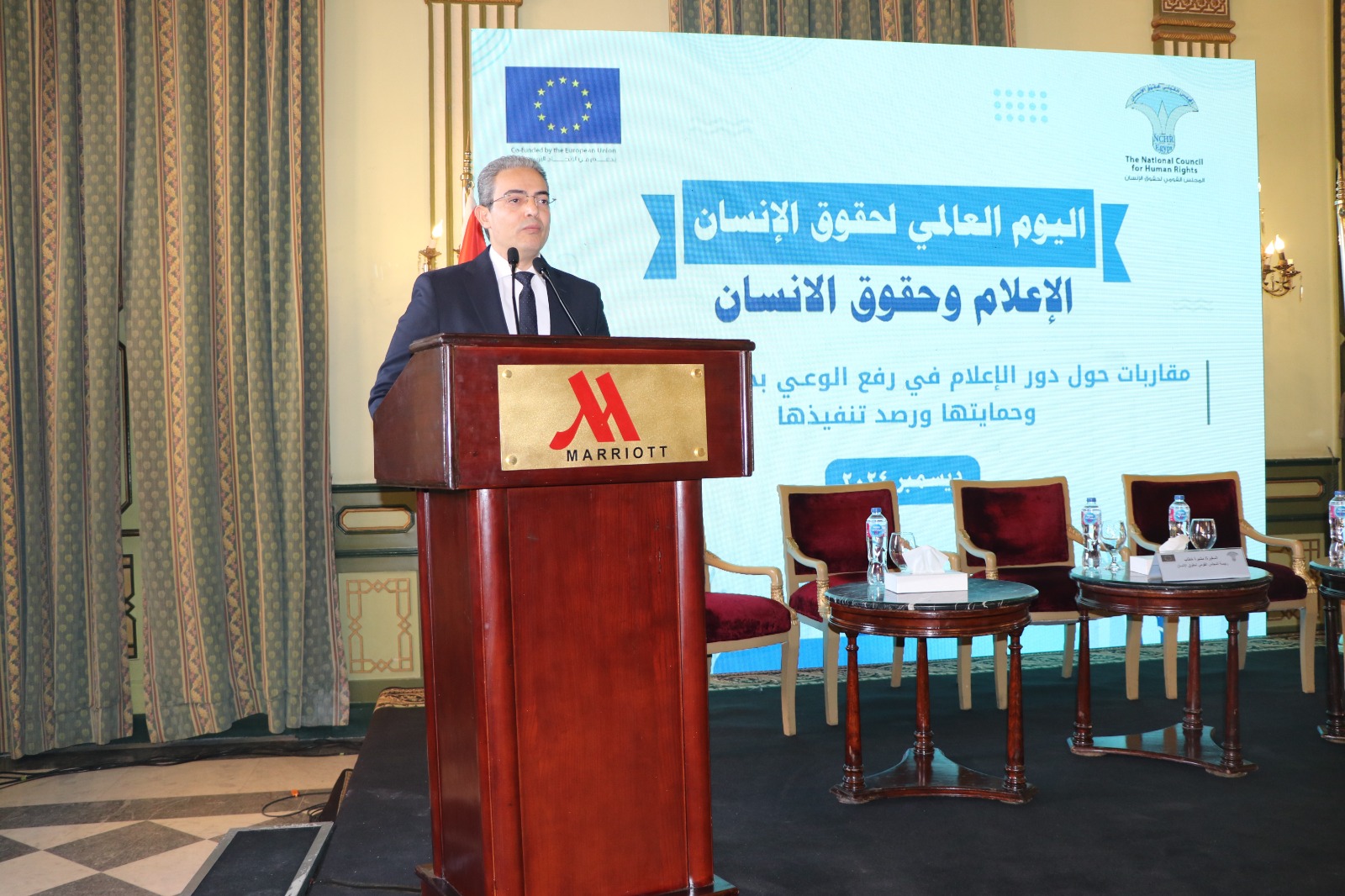 استعرض نقيب الإعلاميين دور المجلس القومي لحقوق الإنسان الذي أُنشئ بهدف تعزيز الحوار والتعاون مع الدول الأخرى لاستلهام النماذج المتطورة في حقوق الإنسان.
