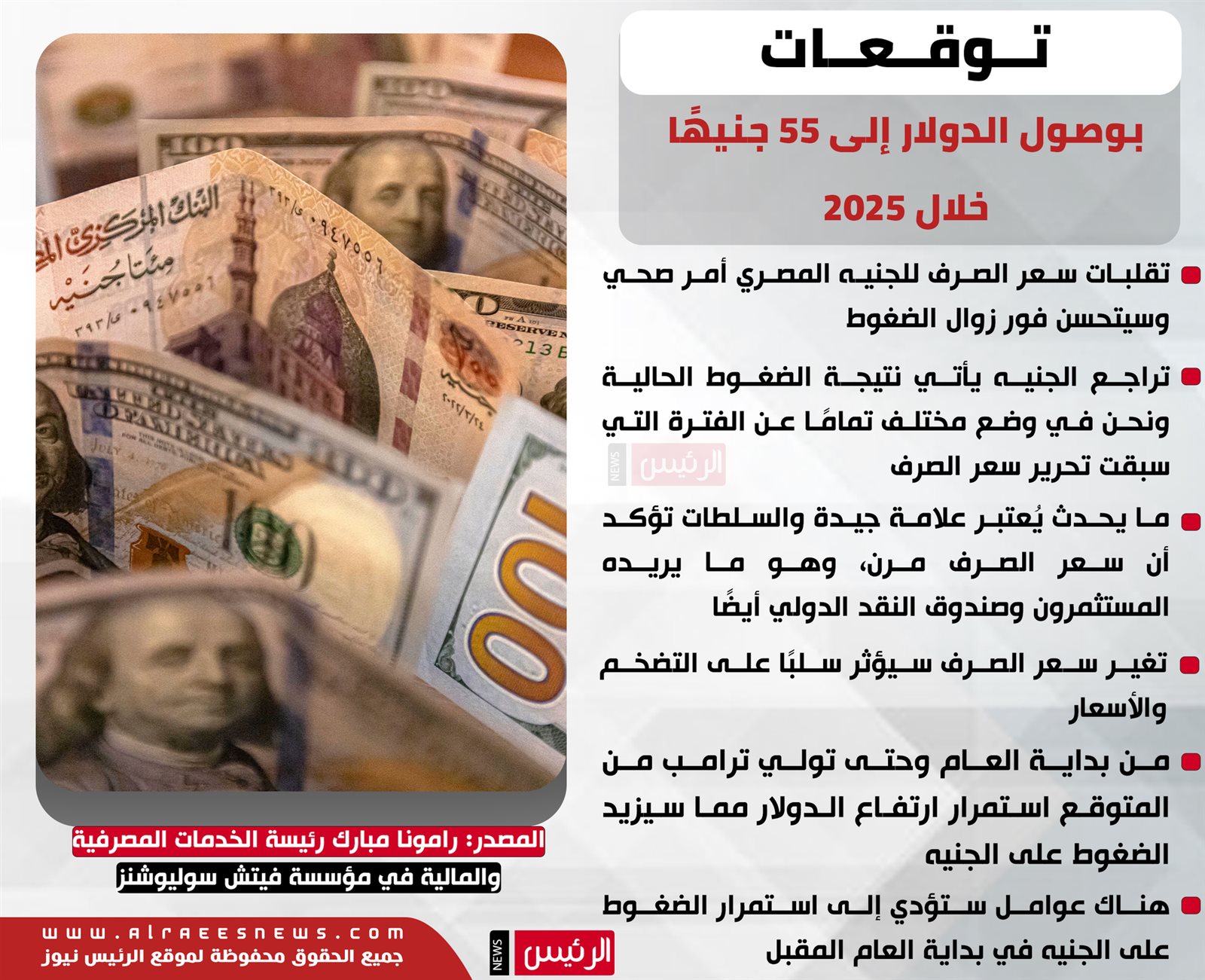 توقعات بوصول الدولار إلى 55 جنيها خلال 2025