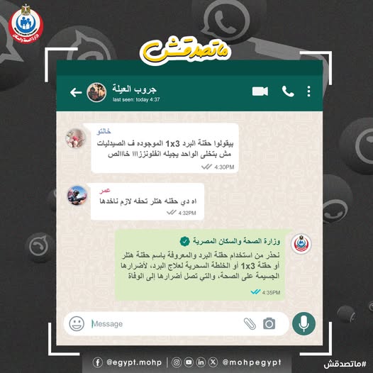 جددت وزارة الصحة والسكان، في منشور عبر صفحتها على موقع التواصل الاجتماعي "فيس بوك" تحذيرها من استخدام حقنة البرد والمعروفة بالأسماء التالية: