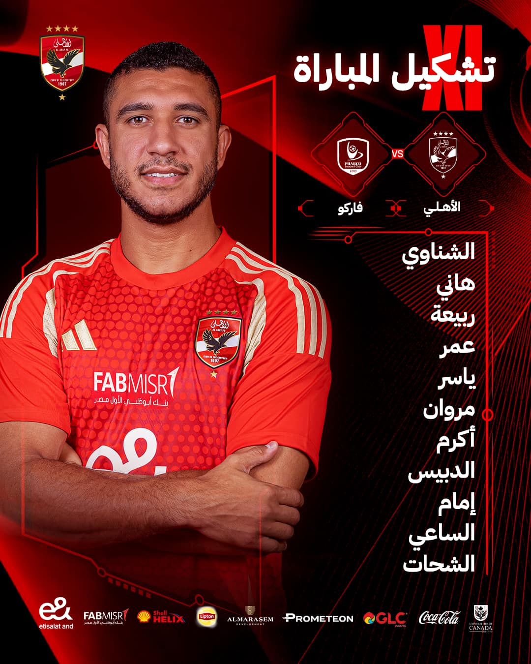 أعلن مارسيل كولر، المدير الفني للفريق الأول لكرة القدم بالنادي الأهلي تشكيل الفريق لمباراة فاركو التي تقام في الرابعة عصر اليوم على استاد الجيش ببرج العرب في بطولة الدوري الممتاز.