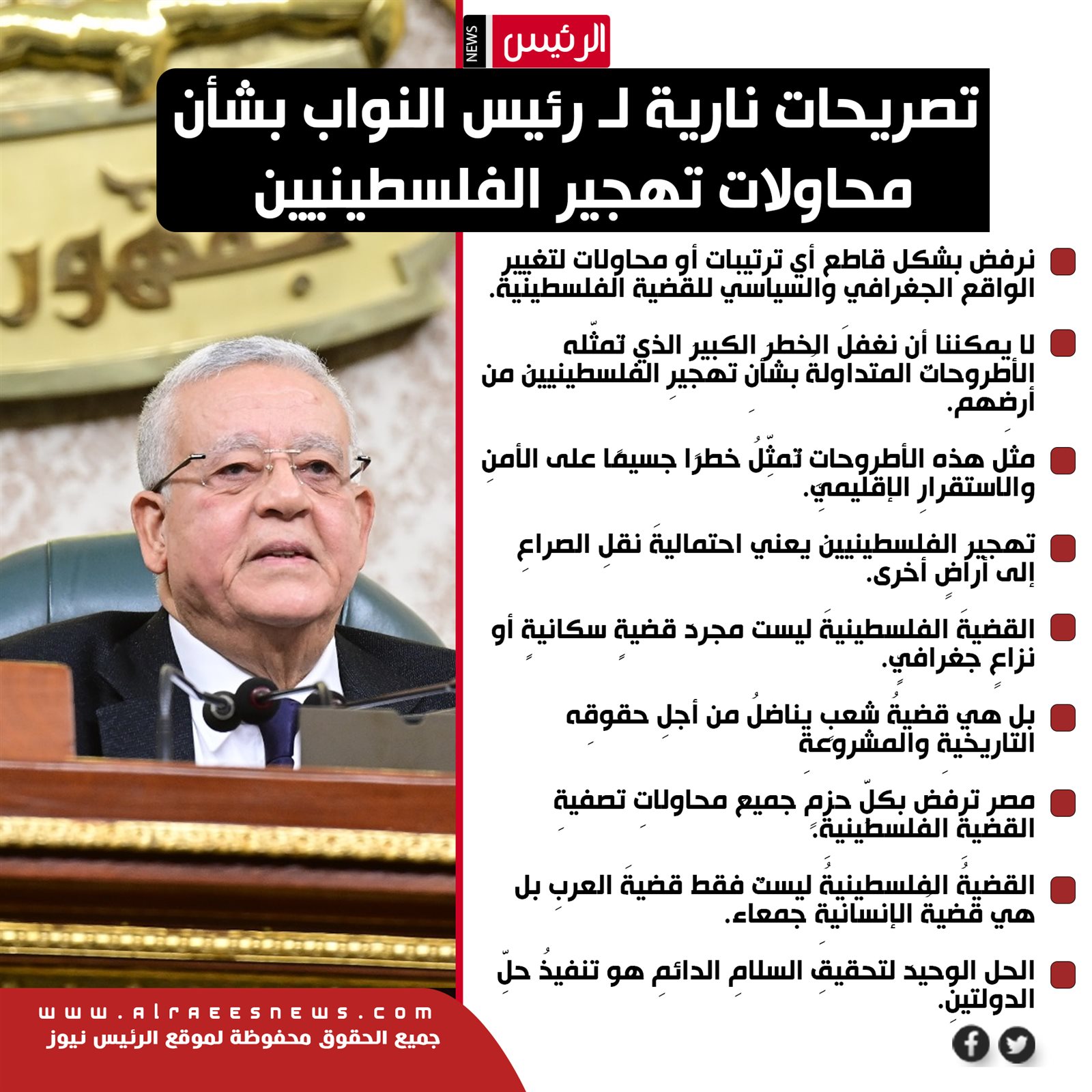 تصريحات نارية لـ رئيس النواب بشأن محاولات تهجير الفلسطينيين