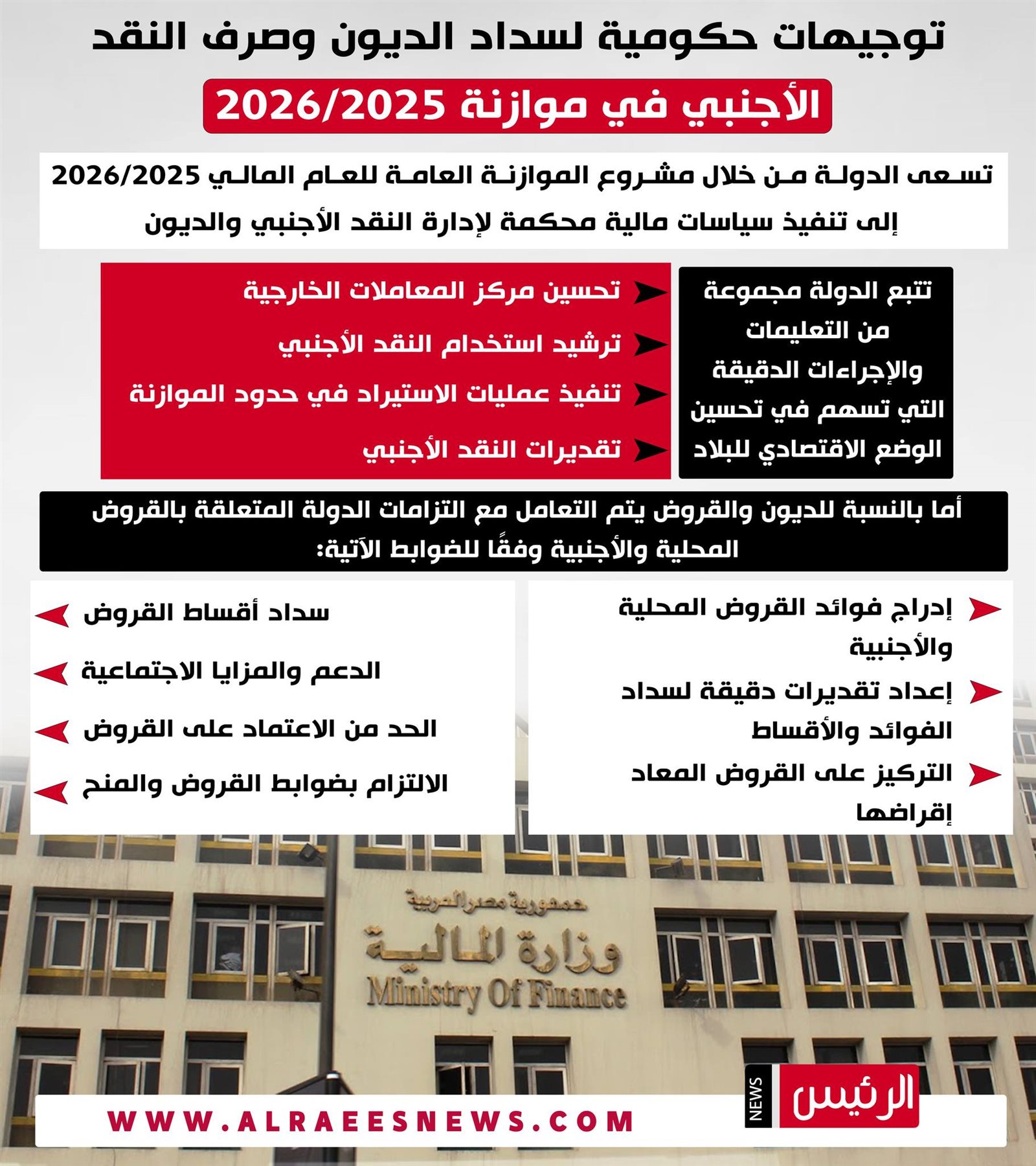 توجيهات حكومية لسداد الديون وصرف النقد الأجنبي في موازنة 2025/2026