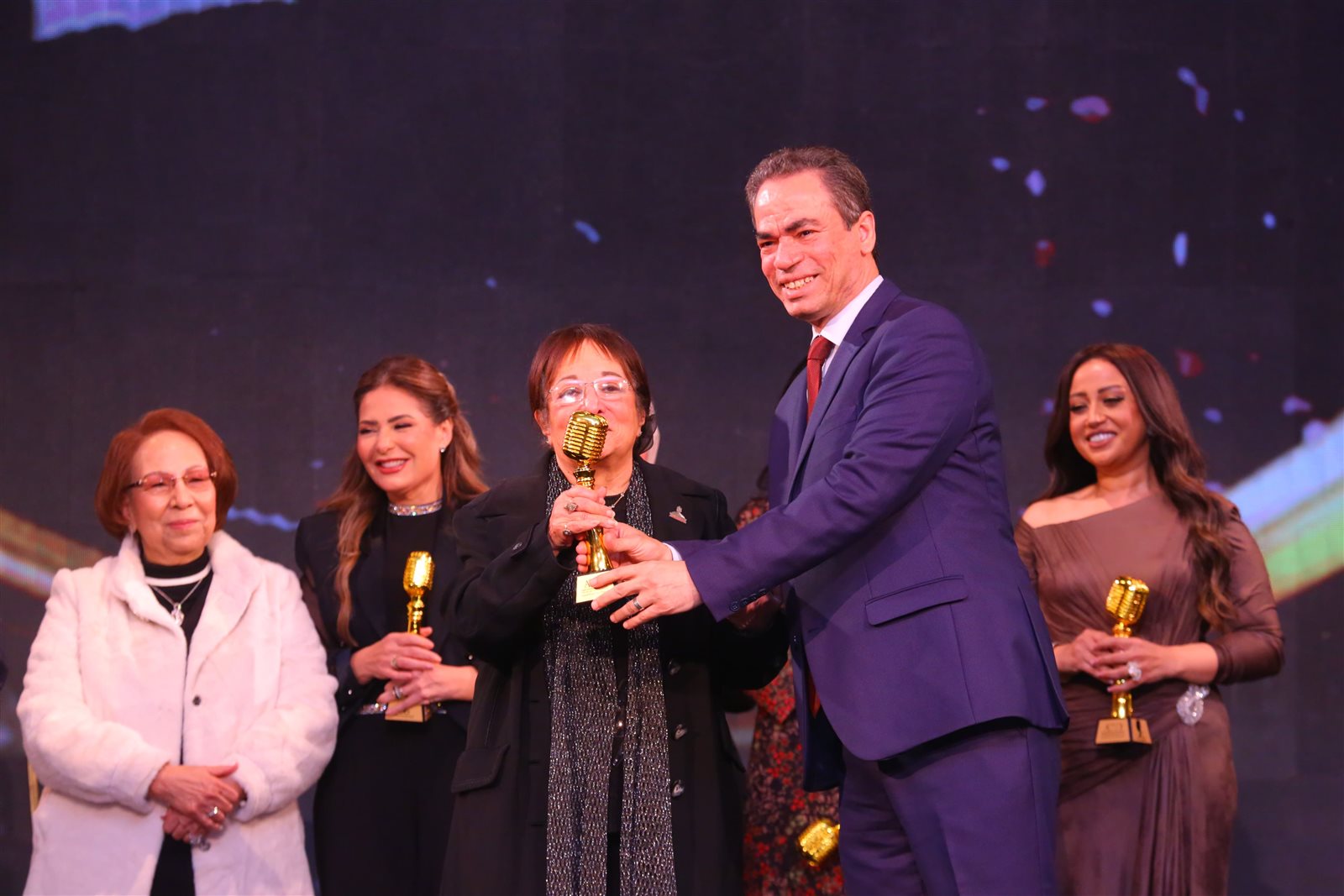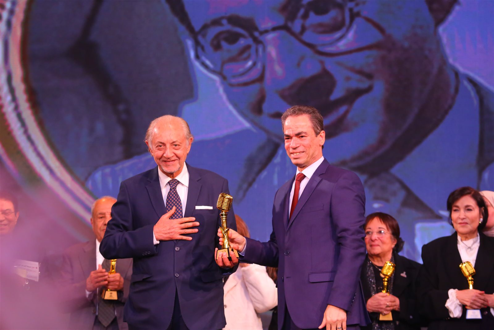 كما ضم الحفل نخبة من نجوم الفن والإعلام، أبرزهم المخرجة الكبيرة إنعام محمد علي، الفنانة صابرين، الفنان أشرف زكي نقيب الممثلين، وأبطال مسلسل "أم كلثوم"، بالإضافة إلى نجمات ماسبيرو المخضرمات سناء منصور، سهير شلبي، وسوزان حسن.