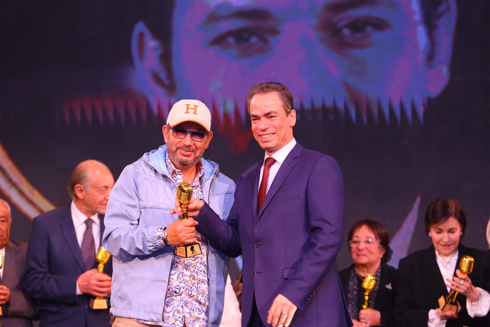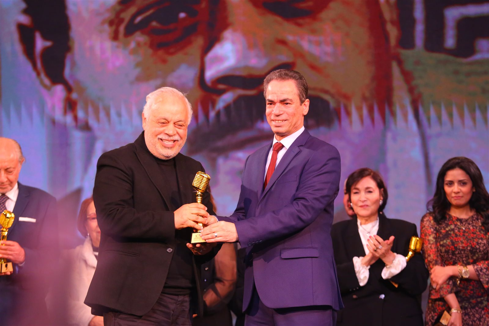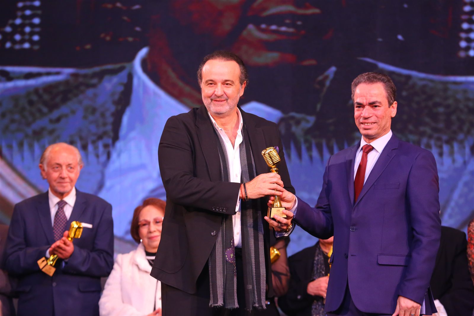 الفنان عبد العزيز مخيون والفنان أشرف زكي، تكريمًا لدورهما في العمل.