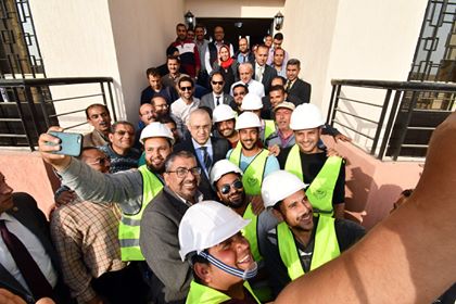 سيلفى وزير الإسكان مع العاملين بالعاشر من رمضان (صور)