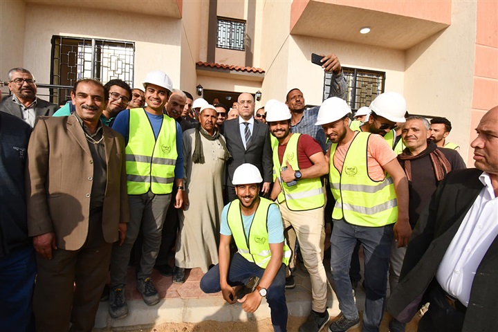وأثناء تفقده لأحد مواقع الإسكان الاجتماعى بالمدينة، أصر العاملون بالموقع على التقاط صورة تذكارية جماعية مع وزير الإسكان، وقام الوزير بتوجيه الشكر لهم على جهدهم المبذول فى تنفيذ هذا المشروع القومى الضخم، الذى يُعد إحدى العلامات المُضيئة فى المدن الجديدة، وفى تاريخ مصر الحديث بوجه عام، باعتباره إحدى أهم أدوات تحقيق العدالة الاجتماعية.