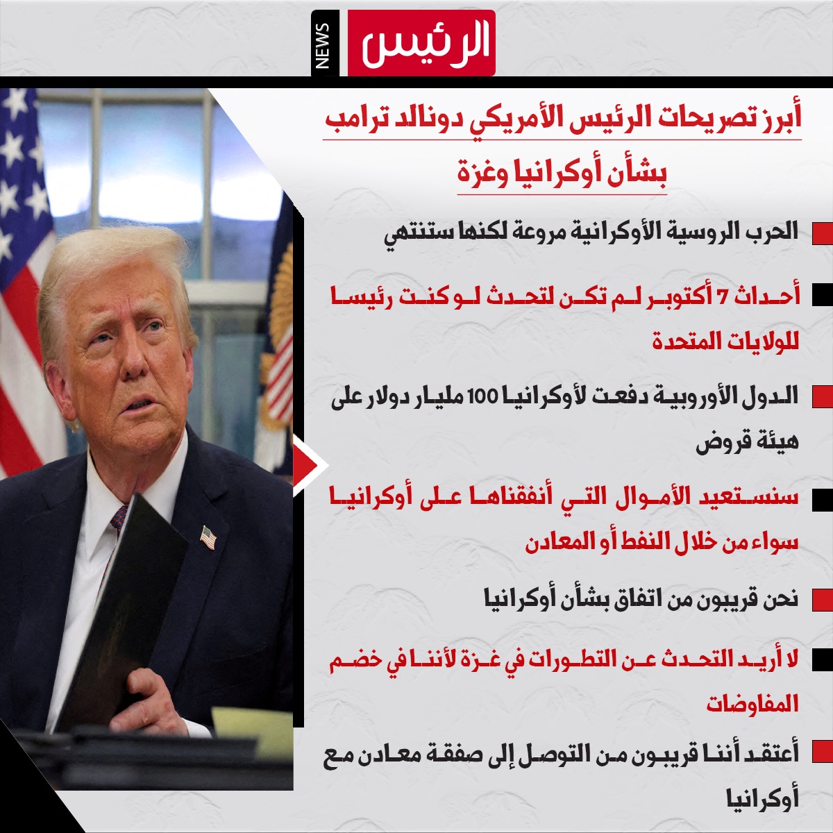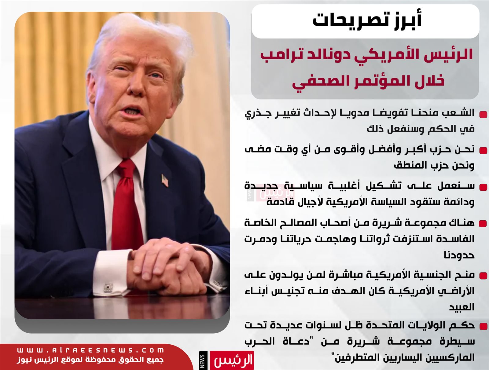 “الرئيس نيوز” يستعرض أبرز تصريحات ترامب خلال المؤتمر الصحفي في الإنفوجراف التالي: