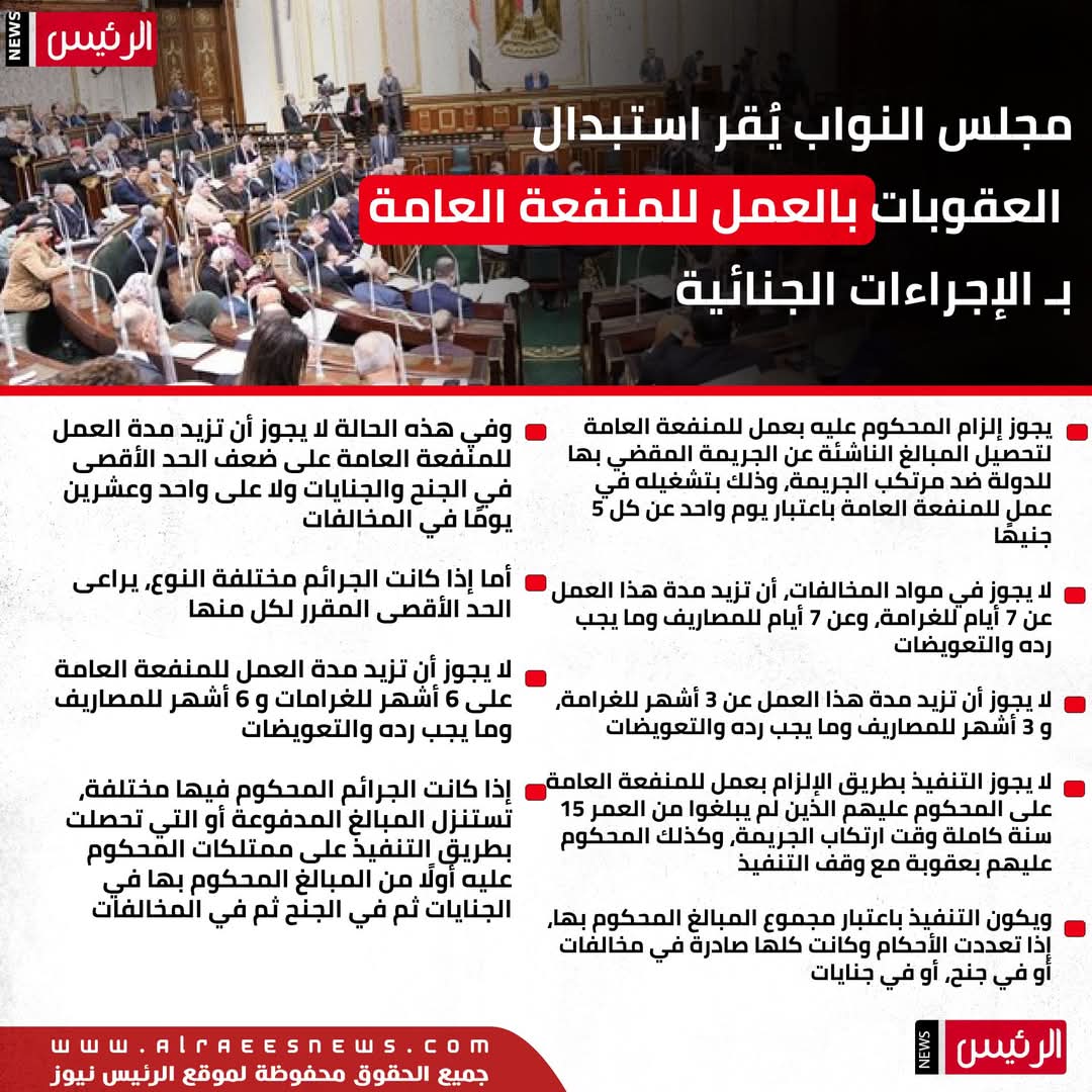 مجلس النواب يُقر استبدال العقوبات بالعمل للمنفعة العامة بـ الإجراءات الجنائية