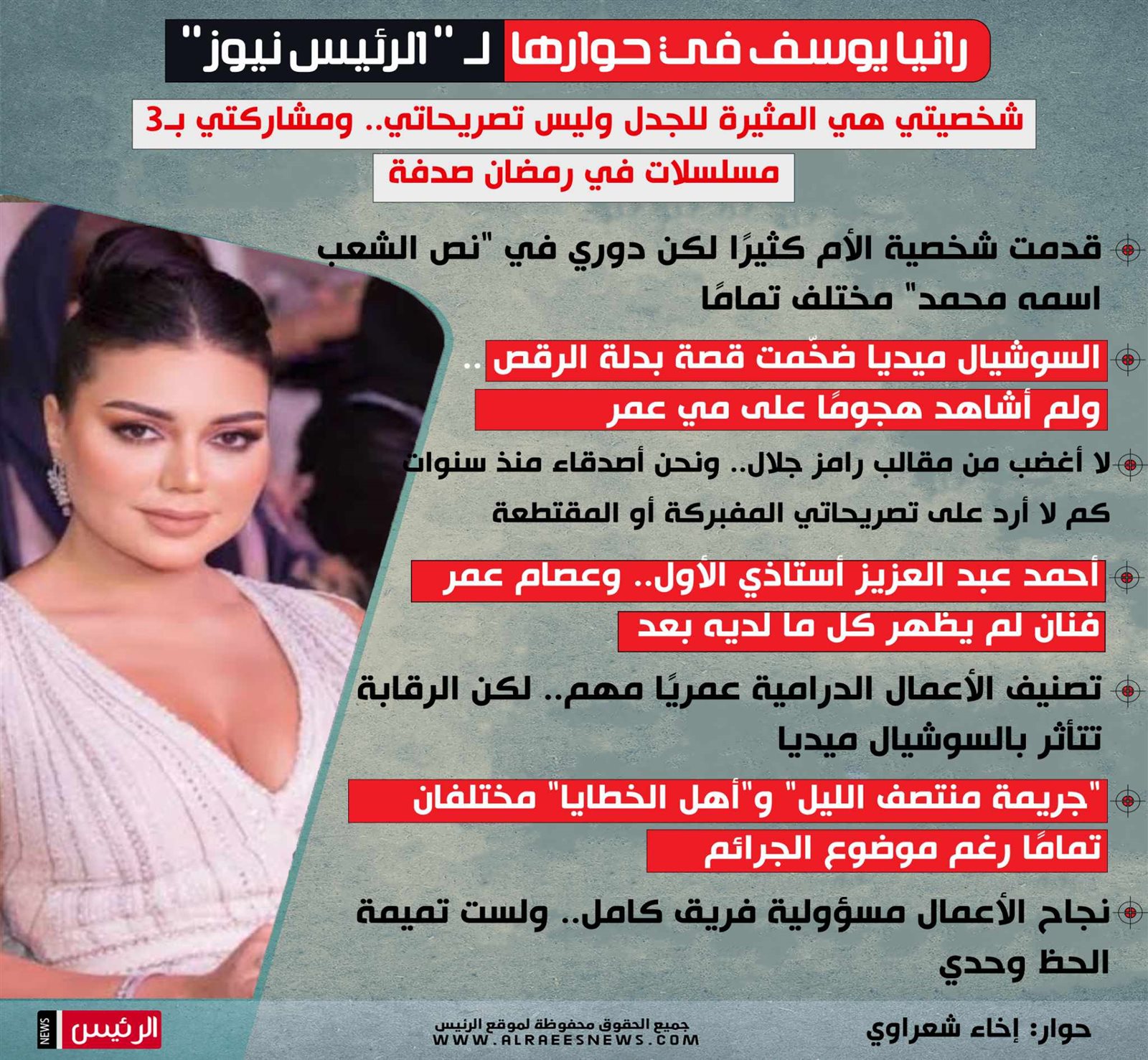 حوار| رانيا يوسف: شخصيتي هي المثيرة للجدل وليس تصريحاتي.. ومشاركتي بـ3 مسلسلات في رمضان صدفة