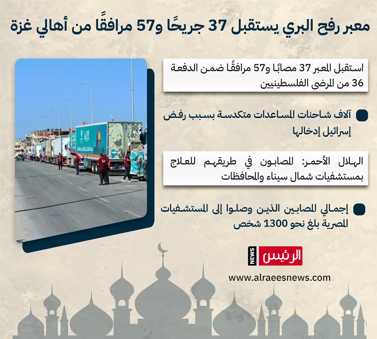 “الرئيس نيوز” يستعرض في الإنفوجراف التالي تفاصيل استقبال معبر رفح البري للمصابين الفلسطينيين ومرافقوهم.