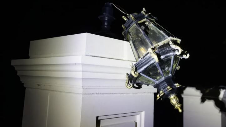 وأكدت شرطة اسكتلندا أنها تحقق في الحادث، وتم كسر مصباح زخرفي على الطراز الفيكتوري مصنوع من الحديد ومطلي باللونين الأسود والذهبي وتركه معلقًا على جانب قاعدة حجرية بيضاء.
