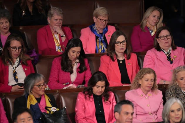 ووفقًا لمجلة ويمين وير دايلي المتخصصة في شؤون الموضة، ارتدت عضوات الحزب الديمقراطي في كتلة النساء في مجلس النواب اللون الوردي أثناء إلقاء ترامب كلمة أمام جلسة مشتركة للكونجرس في مبنى الكابيتول الأمريكي في الأسبوع الماضى في واشنطن العاصمة.