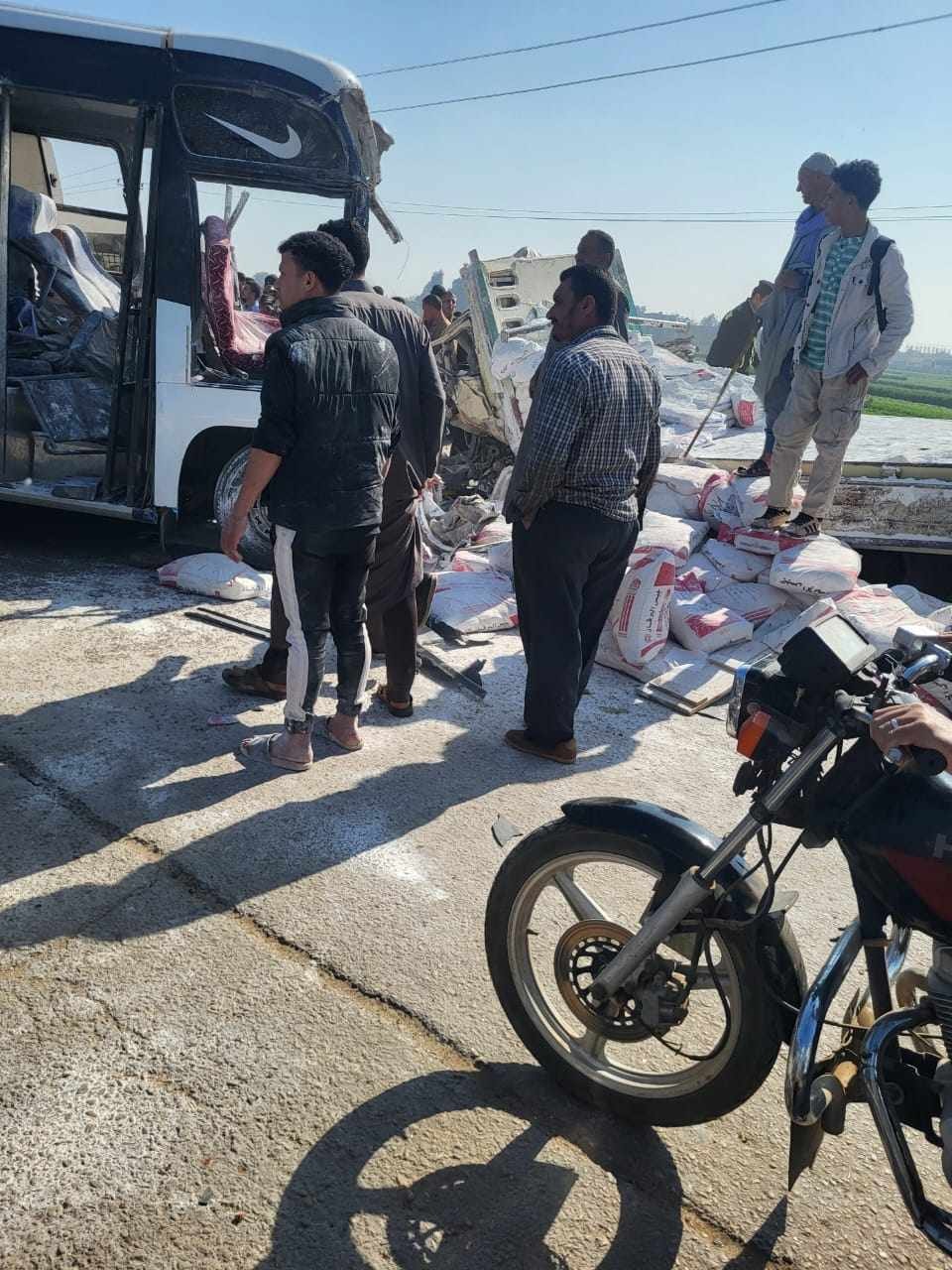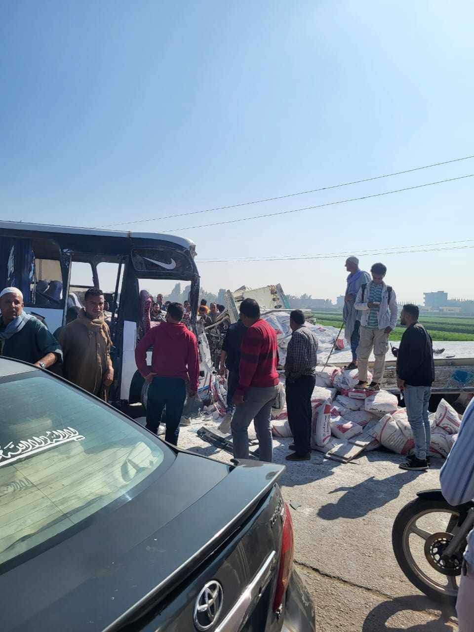 تفاصيل مصرع شخصين وإصابة 25 في حادث تصادم مروع بالمنوفية (صور)