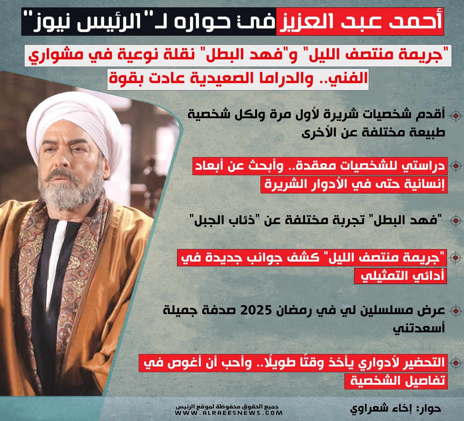 الفنان أحمد عبد العزيز في حواره لـ"الرئيس نيوز":