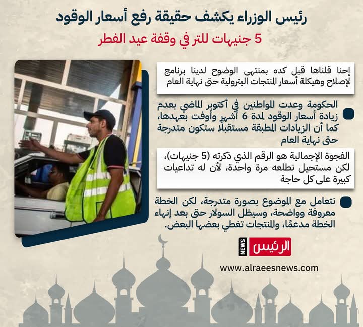 انفوجراف.. حقيقة رفع أسعار الوقود 5 جنيهات للتر في وقفة عيد الفطر