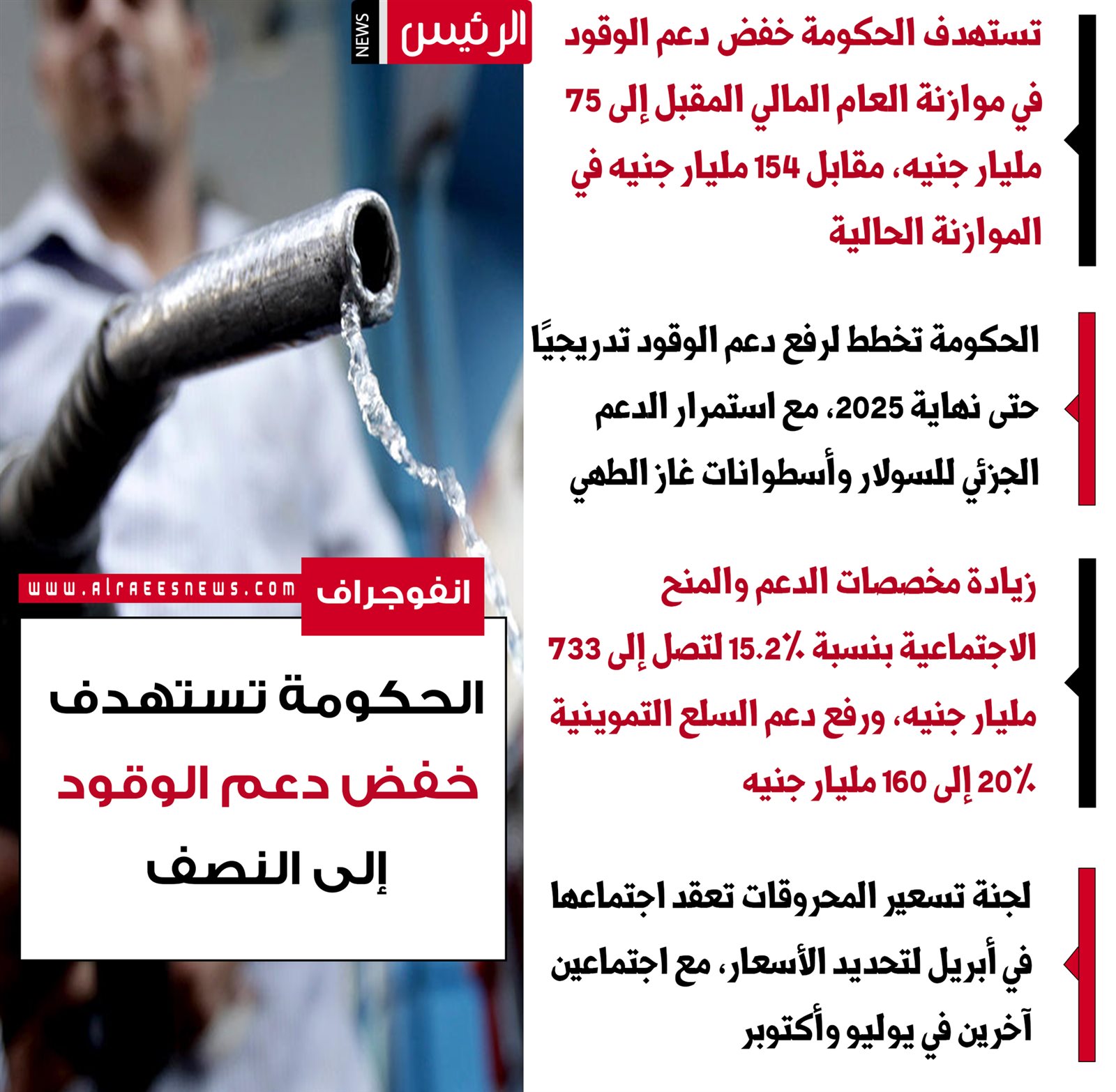 وفي الإنفوجراف التالي، نستعرض خطة الحكومة لخفض دعم الوقود إلى النصف: