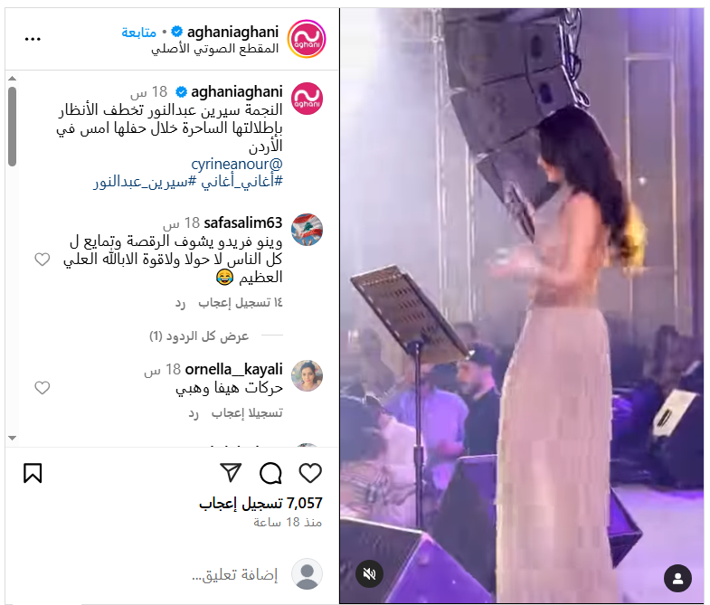 خطفت الفنانة سيرين عبد النور الأنظار بفستان مكشوف وحركات هيفاء وهبي وذلك خلال حفلها في دولة الأردن التي أُقيمت بمناسبة عيد الفطر، موقفًا غير متوقع بعدما اقتحم أحد المعجبين المسرح لالتقاط صورة معها.