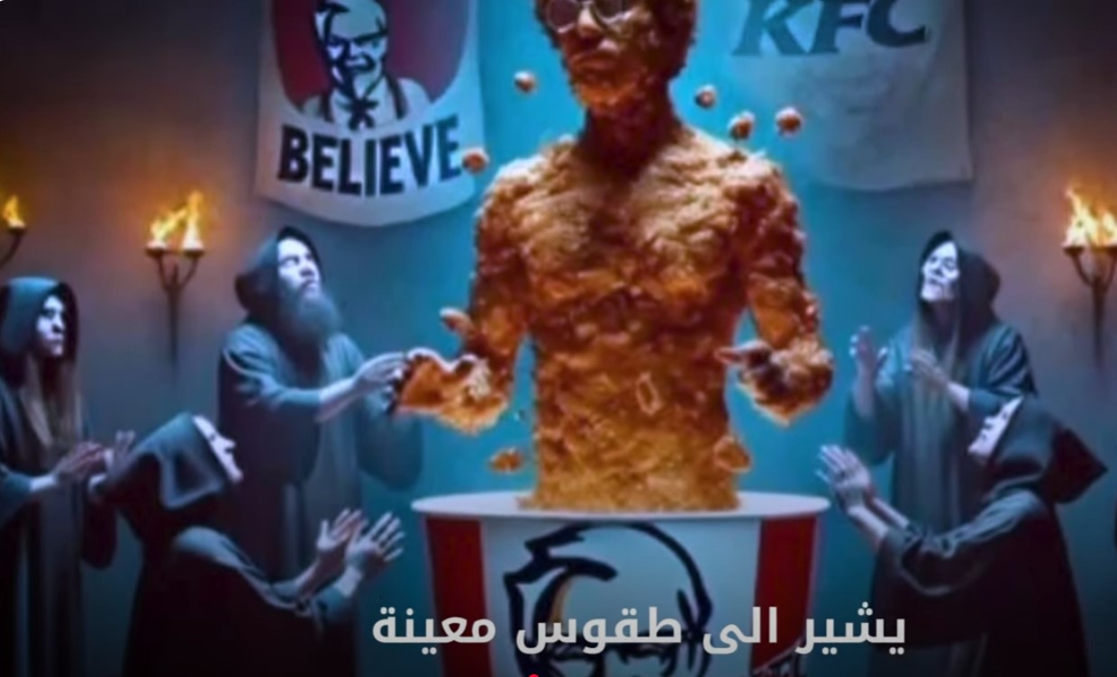 وعقب طرح إعلان كنتاكي الجديد KFC، اشتعلت منصات التواصل بآلاف التعليقات، التي تساءلت عن الهدف من هذه الرسائل المريبة، واتهم البعض الشركة بالترويج لرموز غامضة وطقوس مرعبة أو أنها إعلان صريح لاستخدام لحوم البشر في منتجاتها، بل ووصل الأمر إلى ربط المشاهد بمفاهيم، مثل نظريات المؤامرة، والتضحية البشرية.. وذهب آخرون إلى اعتبار الإعلان سخرية مبطّنة من القضايا الجارية في العالم العربي، مستندين إلى التشابه في مظهر الشخصيات مع بعض العناصر العسكرية المعروفة.