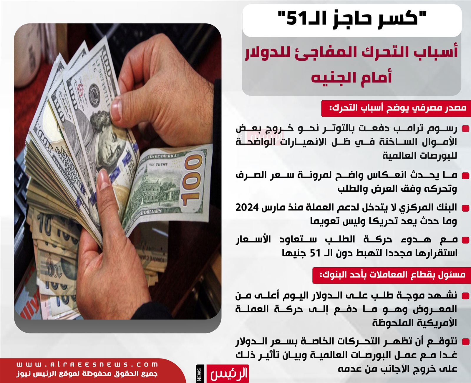 تحرك مفاجئ في سعر صرف الدولار ليكسر حاجز الـ51 جنيها.. ما السبب؟