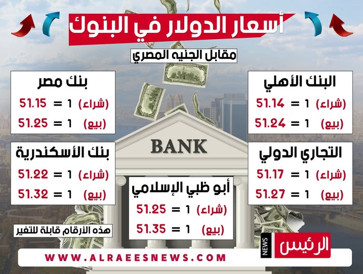 أسعار صرف الدولار مقابل الجنيه في البنوك اليوم